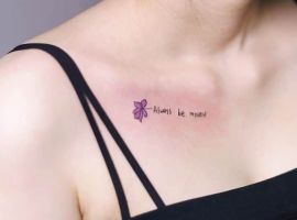 - Маленький символ или короткая надпись под одной ключицей – минимализм, интимность, глубокий смысл. Отлично подходит для первого тату.
