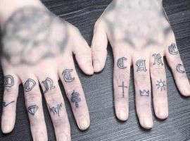 А вот второй вариант – противоположный, и больше подходит для мужчин. Они наносят тату на пальцах мужские грубые объемные и заметные. Это делается для привлечения внимания, ведь именно на этом месте рисунки будут бросаться в глаза. Так делают известные артисты, к примеру – реп исполнители и их последователи. К тому же, в таком случае это не единственный рисунок на теле. Чаще так делают те, у кого «забиты» все (или большинство), объемные открытые участки кожи.