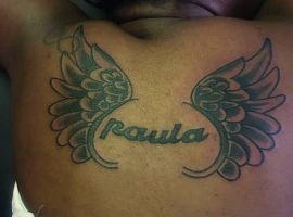 Одной из популярных женских татуировок на лопатках сейчас являются крылья. Такое изображение может иметь разные значения: непорочность, духовную силу, красоту, стремление к свободе, независимость от условностей, веру в божественную волю. Сочетание крыльев с надписью помогает дополнить смысл изображения, понять, что вкладывает в него человек.