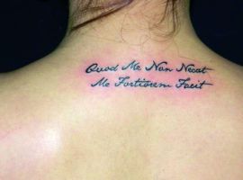 Тату надпись на спине – это не только украшение, подчеркивающее красоту фигуры и скрывающее недостатки. Оно помогает рассказать о себе, выразить свою индивидуальность. Но для этого татуировка должна быть красивой, а при выборе иностранного языка точно повторять написание букв. Поэтому нужно обратиться к мастеру, который не только поможет выбрать эскиз, предоставив фото разных вариантов, но и нанесет татуировку качественно, как в нашем салоне Альянс в Киеве.