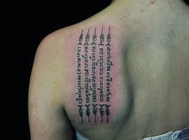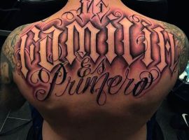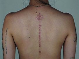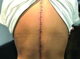 Спина считается самым подходящим местом для татуировки. Здесь можно набить красивый объемный рисунок или длинную фразу. Это подходящий способ самовыражения для любого человека. Тату надписи на спине популярны у мужчин и у женщин. Их легко скрыть одеждой, а большая поверхность открывает широкий простор для творчества.