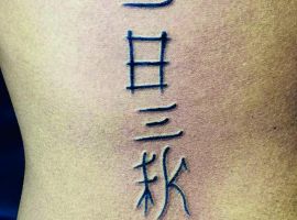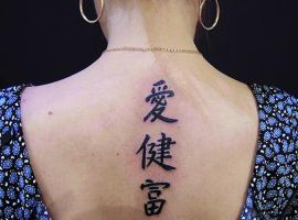 Особенно популярны тату надписи у девушек. Обычно они выбирают поясницу или верхнюю часть спины. Часто надпись переходит на ребра, шею. Красиво также смотрится длинная фраза, написанная каллиграфическим почерком вдоль позвоночника. В восточных странах верят, что такая татуировка сильно влияет на характер и судьбу человека. Ведь позвоночник – это энергетический центр организма. Поэтому желательно выбирать надписи с положительным смыслом.