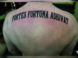 Например, в последнее время популярной для татуировки стала фраза, выбитая на спине Джона Уика: FORTIS FORTUNA ADIUVAT. Она не только красиво смотрится, но и имеет глубокий смысл. Перевести ее можно «судьба помогает смелым». Это очень мотивирующая поговорка. Есть еще несколько популярных надписей: