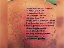 - можно разместить надпись на лопатках, пояснице, она может переходить на шею или ребра.