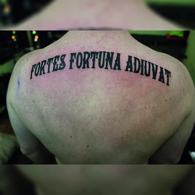 Например, в последнее время популярной для татуировки стала фраза, выбитая на спине Джона Уика: FORTIS FORTUNA ADIUVAT. Она не только красиво смотрится, но и имеет глубокий смысл. Перевести ее можно «судьба помогает смелым». Это очень мотивирующая поговорка. Есть еще несколько популярных надписей: