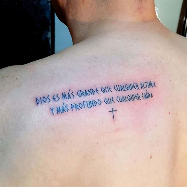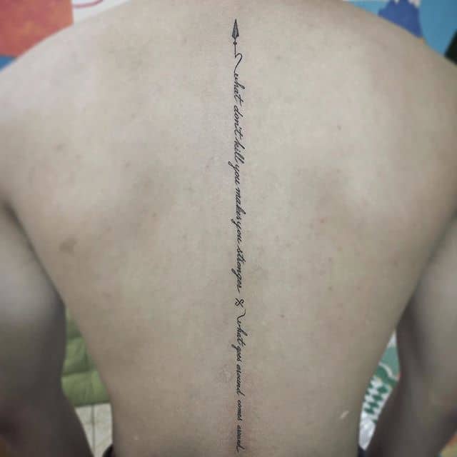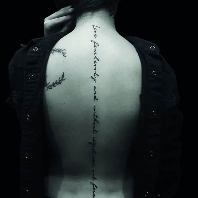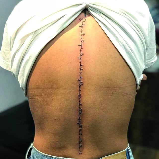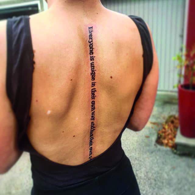 Спина считается самым подходящим местом для татуировки. Здесь можно набить красивый объемный рисунок или длинную фразу. Это подходящий способ самовыражения для любого человека. Тату надписи на спине популярны у мужчин и у женщин. Их легко скрыть одеждой, а большая поверхность открывает широкий простор для творчества.