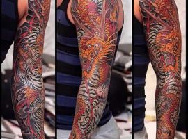 Тату рукав – это комплексное изображение, охватывающее всю поверхность от плеча до запястья, создающее единую композицию. Такой рисунок требует нескольких сеансов, иногда до 10–15 часов работы, поскольку мастер постепенно заполняет пространство, обеспечивая плавные переходы между элементами. Главная особенность – единство стиля: все части должны сочетаться, словно пазл, чтобы избежать хаоса.