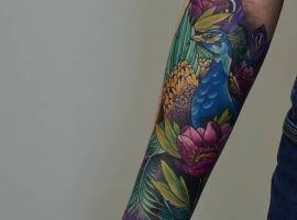 Тату павлин – это красивый и стильный рисунок на теле, который отлично подойдет женщинам. Со времен древности эта птица считалась не только эталоном красоты и грациозности, но и богатства, материального достатка. К мастерам тату-салона Альянс обращаются люди, чтоб сделать татуировку павлина в любом стиле и любого размера. Можно быть уверенными в том, что большой опыт позволит мастерам воплотить в жизнь даже самую сложную вашу идею.