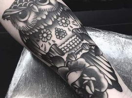Композицию татуировки можно продолжить при желании. Если у Вас появились новые идеи, как можно дополнить вашу татуировку, это будет не сложно осуществить на предплечье. Ее можно превратить в рукав или полурукав, дополнить новыми деталями по кругу руки, выйти на кисти. Все будет зависеть от стиля и идеи.