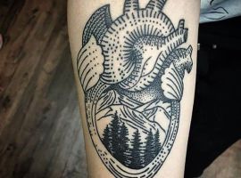 Лес на предплечье. Такая мужская тату на предплечье смотрится очень эффектно. По смысловой нагрузке он может обозначать поиски себя и смысла жизни, душевные переживания, странствия, замкнутость и отшельничество.