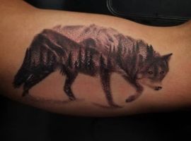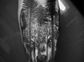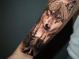 - Тату волк в лесу. Хищник в лесу символизирует поиски жизненного смысла, что означает для окружающих силу духа и постоянную работу над собой.