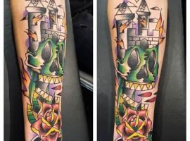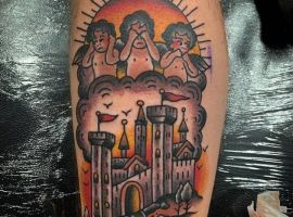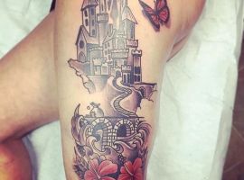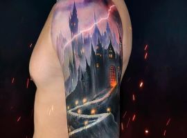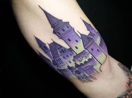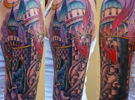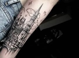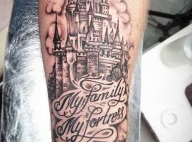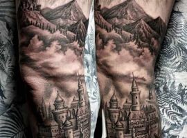 Татуировки с замками, крепостями, оборонными сооружениями с высокими стенами и башнями – это многогранный символ. Дело в том, что эти конструкции могут быть какими угодно. К примеру, средневековая башня была защитным сооружением. Поэтому татуировка с ней может говорить о сознательном желании человека защититься от осуждения обществом. Тату замка диснеевских принцесс – символ совершенно иной по своему смыслу. Такая татуировка расскажет скорее о желании возвратиться в детство и о нежелании решать взрослые проблемы. Иногда замки и крепости делают просто для красоты, без смыслового контекста… Мастера тату-салона Альянс готовы выполнить любой эскиз на данную тематику. Вам желательно ознакомиться со всеми значениями башен и крепостей, чтоб понять, подойдет ли такой рисунок конкретно вам.