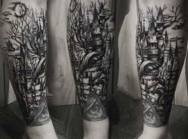 Наши мастера салона Альянс в Киеве готовы выполнить любой эскиз тату с башнями и крепостями. Примеры работ можно посмотреть в «Портфолио».