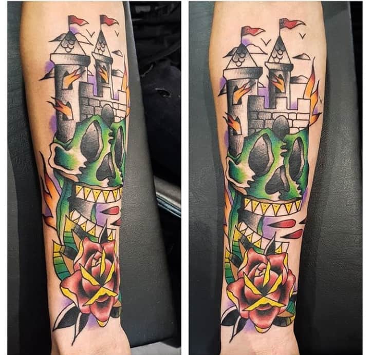 Татуировки с замками, крепостями, оборонными сооружениями с высокими стенами и башнями – это многогранный символ. Дело в том, что эти конструкции могут быть какими угодно. К примеру, средневековая башня была защитным сооружением. Поэтому татуировка с ней может говорить о сознательном желании человека защититься от осуждения обществом. Тату замка диснеевских принцесс – символ совершенно иной по своему смыслу. Такая татуировка расскажет скорее о желании возвратиться в детство и о нежелании решать взрослые проблемы. Иногда замки и крепости делают просто для красоты, без смыслового контекста… Мастера тату-салона Альянс готовы выполнить любой эскиз на данную тематику. Вам желательно ознакомиться со всеми значениями башен и крепостей, чтоб понять, подойдет ли такой рисунок конкретно вам.