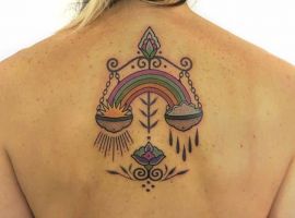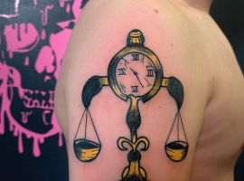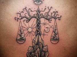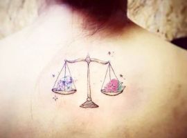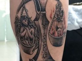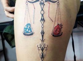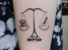 Нередко как обычные весы, так и тату знак зодиака весы комбинируются с другими предметами. В чаши помещаются важные для человека вещи: