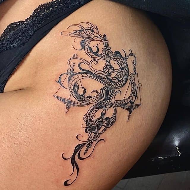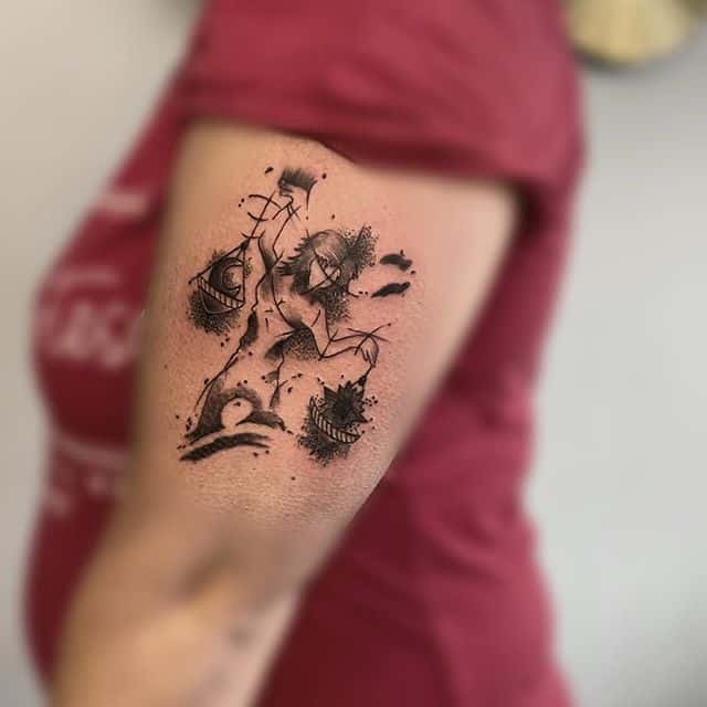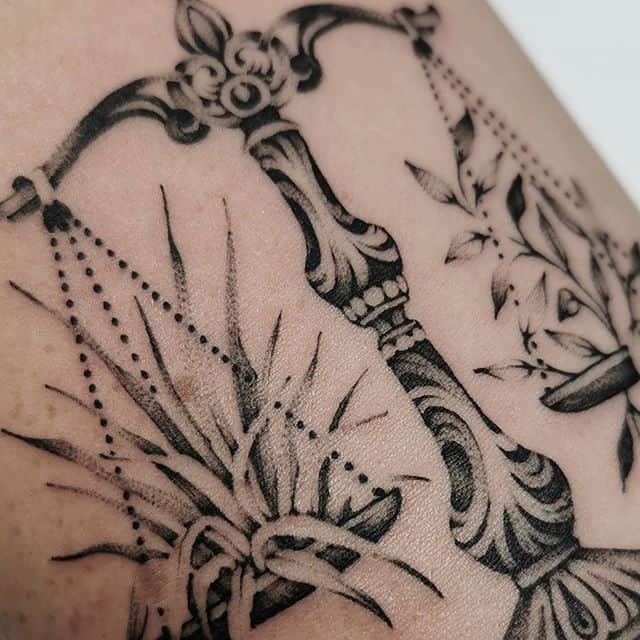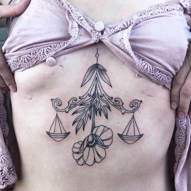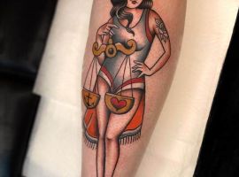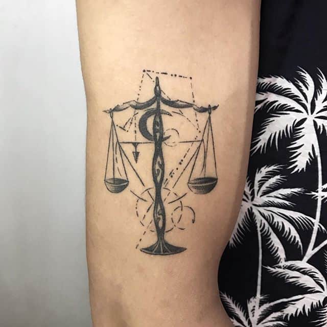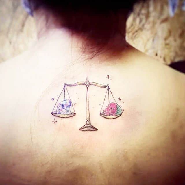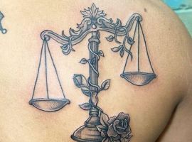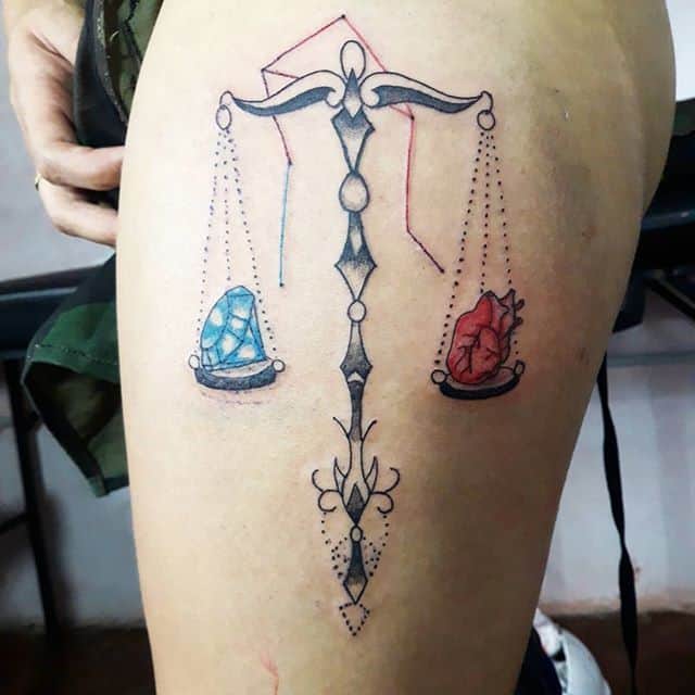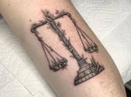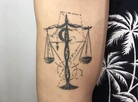 Нередко как обычные весы, так и тату знак зодиака весы комбинируются с другими предметами. В чаши помещаются важные для человека вещи: