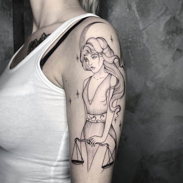 Татуировка с изображением весов одинаково часто встречается у представителей обоих полов. Эскиз тату весов для девушек часто дополняется цепочками, звездами, другими романтичными мелочами. Некоторые изображения выполняются в виде созвездия, они подчеркивают романтичность и тягу к творчеству своей обладательницы. В сомнительных ситуациях знак помогает принять правильное решение, избежать неверности по отношению к супругу. Рисунок делает свою обладательницу уверенней, помогает освободиться от неопределенности и гнетущих сомнений.