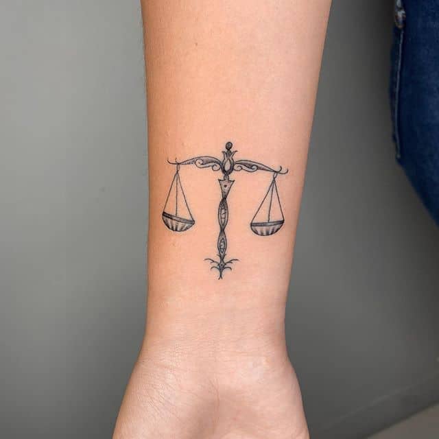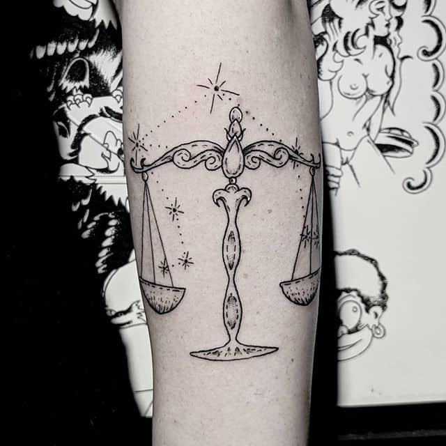 Тату весов без астрологического подтекста наносят люди с развитым чувством справедливости. Они не переносят лицемерия, и ценят честность в своем окружении. Если на рисунке пустые чаши весов уравновешены – человек живет в гармонии с самим собой, если нет – владелец тату переживает из-за внутреннего дисбаланса. Иногда изображение наносится, чтобы напоминать человеку о его заветной мечте.