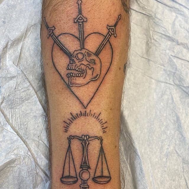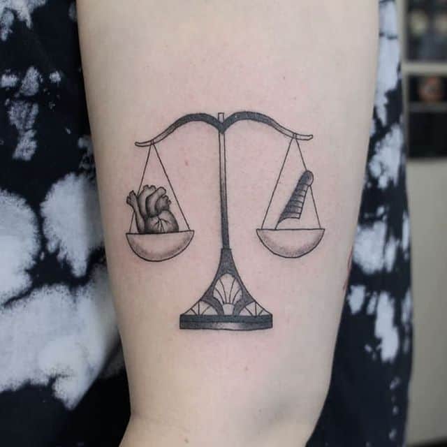 Помимо популярных значений, весы являются воплощением добра и зла, рассудительности. Татуировка этого зодиакального знака помогает владельцу достичь внутренней гармонии, охраняет от несчастий, нечестных людей, скандалов и болезней. Изображение уравновешивает мысли, помогает найти верный путь. Перевешивание чаши весов с определенным предметом указывает на предпочтения человека. Например, более тяжелая сторона с сердцем указывает на важность романтики и любви в жизни обладателя татуировки.