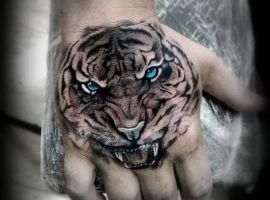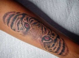 Тату глаза тигра могут говорить о проницательности, наблюдательности, внимательности к деталям, желании контролировать какую-то ситуацию по максимуму. Популярные цвета для глаз синий, зеленый, желтый, белый. Красный цвет будет сигналом о ярости и гневе обладателя картинки на теле. В большинстве случаев делают тату на руке.