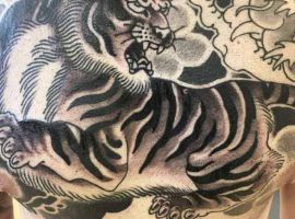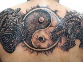 Дракон с тигром будет служить сигналом о внутренней борьбе человека, сомнениях и страхах, сложном выборе в жизни. Обычно, дракон олицетворяет мужское начало в человеке. Такой сюжет можно встретить в японских эскизах как часть рукава.