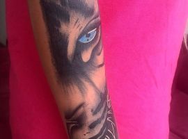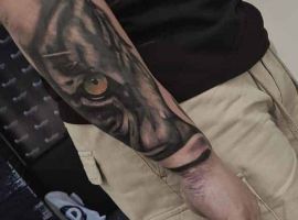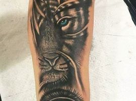 Половину морды чаще набивают те парни, которые нашли сходство с собой в характере и образе животного. Встречается комбинация с половиной головы человека, черта, волка, самурая, джокера и других. Такие рисунки говорят о сочетании в одном человеке двух или более сторон, добра и зла, темного и светлого. Удачным местом будет предплечье.