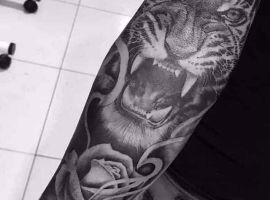 Тату тигр с розой ассоциируется со страстью и любовью, преданностью.