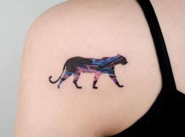 Животное в космосе будет символизировать спокойствие, принятие жизни как есть, таинственности. Чаще всего выбирают место на руках, оригинально смотрится с переходом тату на кисти космоса, звезд в черно-белом формате и или голубом, фиолетовом, синем цветах. Интересно будет выглядеть в сочетании со стилем геометрия.