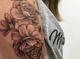 Вторые по популярности – тату пионы. Эти цветы красивые, символичные, и универсальны. Значение пиона: удача, богатство, процветание. Татушки с ними помогут привлечь успех во всех сферах.