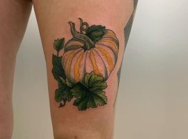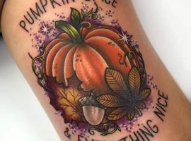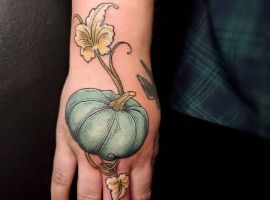 Тату с изображением различных овощей – не самая популярная идея, так как с виду – это очень обычные и непримечательные изображения, а какой они несут смысл мало кто знает. Мы расскажем Вам о значении тату тыква, которое не такое уж и простое.