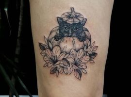 Одним словом – символизм тату с тыквой очень многогранен и только Вы сами выбираете, что будет означать именно Ваша татуировка. Самое главное – найти опытного мастера, как в нашем салоне в Киеве, и подобрать удачный эскиз.