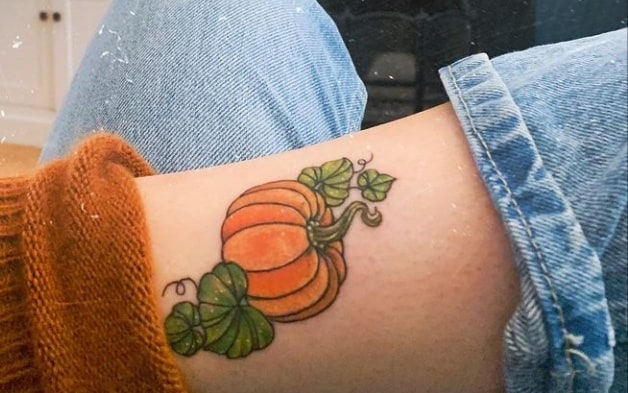 Тату с изображением различных овощей – не самая популярная идея, так как с виду – это очень обычные и непримечательные изображения, а какой они несут смысл мало кто знает. Мы расскажем Вам о значении тату тыква, которое не такое уж и простое.