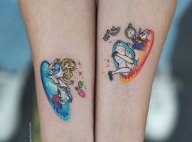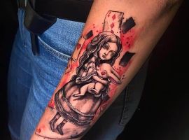 Татуювання за мотивами казки «Аліса в країні чудес» зазвичай зображують у одному з двох стилів: мультяшному, в точності повторюючи персонажів з мультфільмів; або реалістичному – повторюючи образи з фільмів – екранізацій цього твору. У будь-якому випадку, загальне у всіх таких тату те, що вони виглядають дуже оптимістично і позитивно. А замовити персональний ескіз можна у салоні Альянс у Києві.