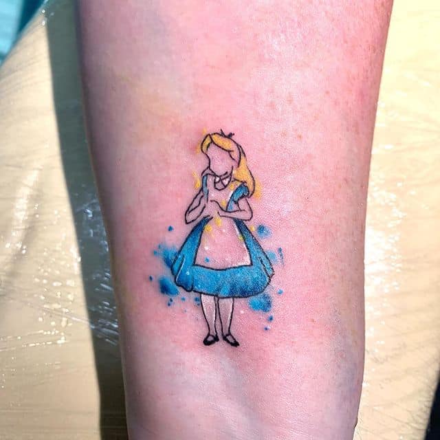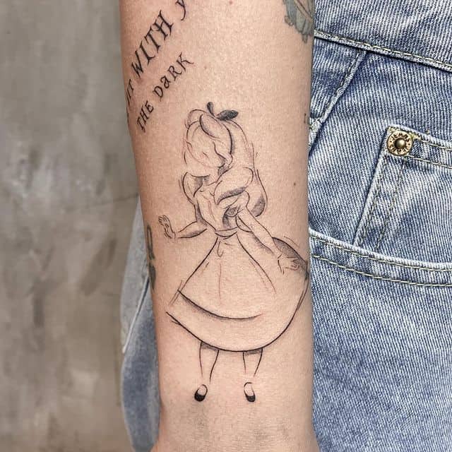 Звичайно, і саму Алісу в якості ідеї для тату вибирають часто. Такий малюнок обирають люди мрійливі і романтичні, які вірять в казку, допитливі і зацікавлені, якою була і сама героїня. Звичайно, частіше дане зображення на шкірі роблять дівчата.
