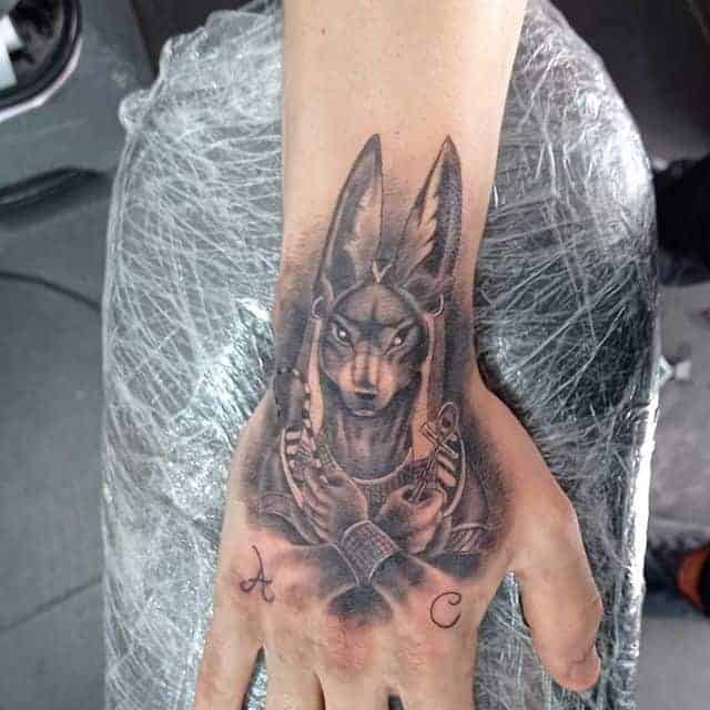 Найчастіше бога зображують на передпліччі. Тату на руці, взагалі найпоширеніші. Це обумовлено довгастою рівною відповідною поверхнею, яку легко можна продемонструвати оточуючим, або навпаки приховати, використовуючи правильний рукав. Також і тату Анубіс на руці зустрічаються найчастіше. Найсміливіші зображують персонажа прямо на кисті, демонструючи свою індивідуальність, незалежність і безстрашність.