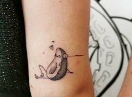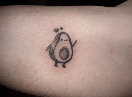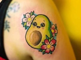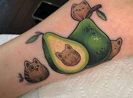 Татуювання у вигляді яскравого авокадо виглядає цікаво і небанально. Цей тренд тільки набирає обертів, але вже встиг завоювати любов серед молоді. Такий тату – знак бажання продовжити красу і молодість. Малюнок можна трактувати як символ ніжних почуттів, адже спочатку слово «авокадо» в перекладі з іспанської означало «плід любові».