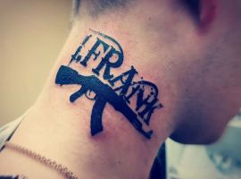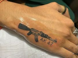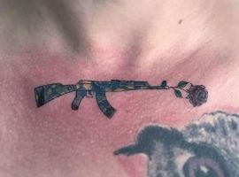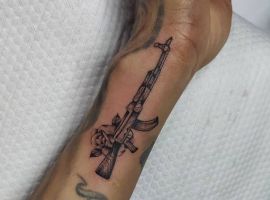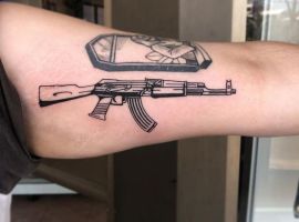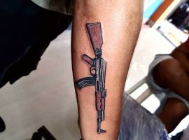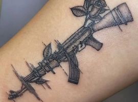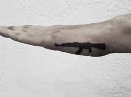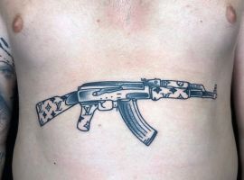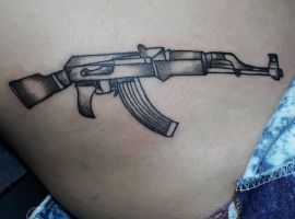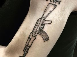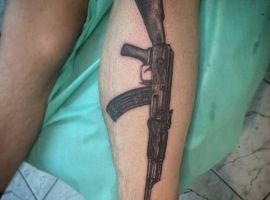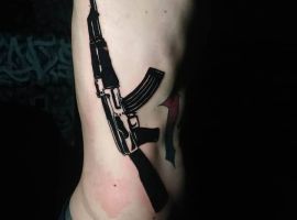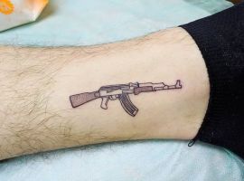 АК-47 Калашников (так званий “Калаш”) – це міжнародний символ влади, незалежності і носить революційний характер! Зображення “калаша” набивають військові, революціонери і люди, які демонструють стійкість свого характеру!