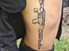 Часто тату автомат АК47 і M16 або інші моделі “місцевого” автоматичної зброї є проявом патріотизму. Це люди, які люблять свою країну і в разі настання військових дій готові встати на її захист! Але це не просто тату «для солдата». Сенс татуювання глибше – вона демонструє високу моральність і наявність почуття справедливості. Також АК-47 і M-16 набивають геймери – фанати Counter-Strike і інших ігор подібного жанру.
