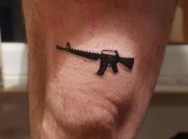 M-16 – американська автоматична гвинтівка, тому саме в США такі зображення дуже популярні. Її часто завдають патріоти США і військові НАТО. Таке зображення символізує вірність своїй країні, стійку відповідь ударам долі і вміння зберігати спокій в екстремальній ситуації.