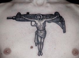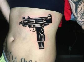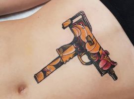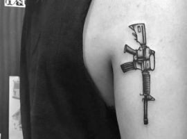 Зображення зброї – це завжди сила, небезпека, агресія. Однак татуювання автомат, кулемет трактується по-різному – багато що залежить саме від особливостей ескізу. Але в будь-якому випадку в список значень татуювання автомат будуть включатися сила, твердість характеру.