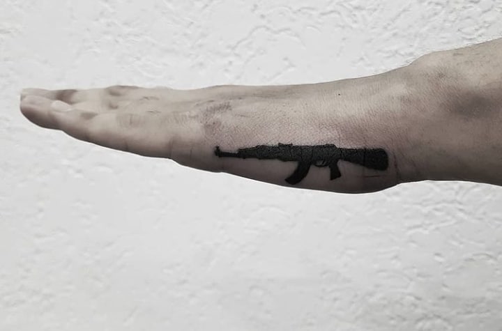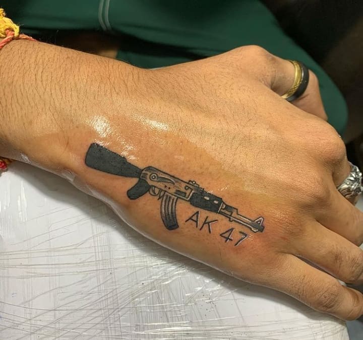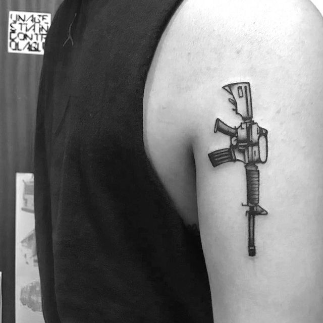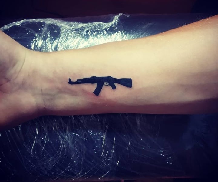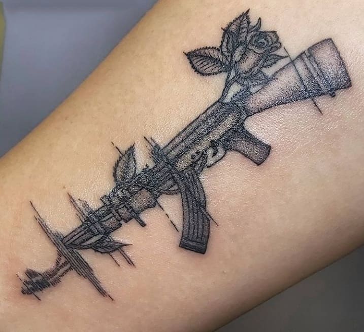 Спочатку тату пістолет або тату автомат люди вибирали з метою висловити так чи інакше свою причетність до військовій сфері. Солдати наносили такі татуювання на тіло по раціональної причини: в разі їх смерті можна було легко визначити по символу, в якому війську вони були. Зараз ця традиція теж залишилася. Наприклад, тату АК 47 є найпоширенішою тату, яка говорить про проходження служби в армії.