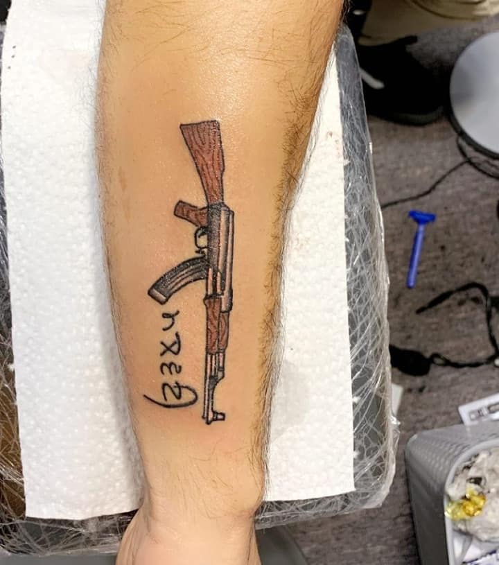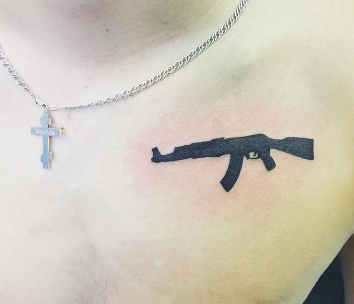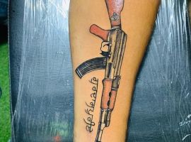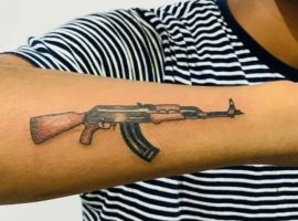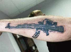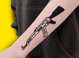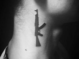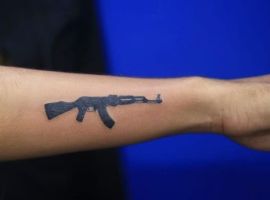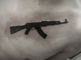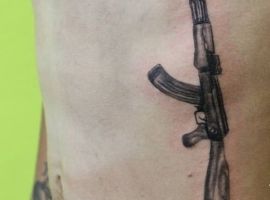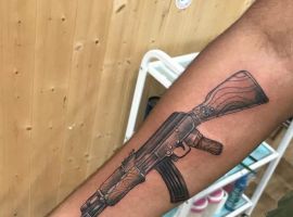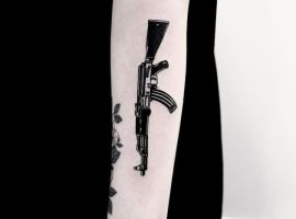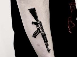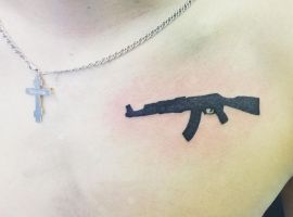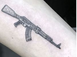 АК-47 Калашников (так званий “Калаш”) – це міжнародний символ влади, незалежності і носить революційний характер! Зображення “калаша” набивають військові, революціонери і люди, які демонструють стійкість свого характеру!