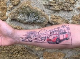 З іншого боку, часто наносять на шкіру зображення з простеньким стареньким автомобілем, а саме – першою машиною власника даного тату. Такий малюнок на шкірі буде нагадувати «з чого все починалося».