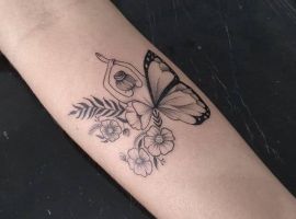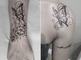 Метелика комбінують з іншими мотивами для посилення сенсу. З квітами: це уособлює красу природи та зростання, як метелик на лотосі, що нагадує про чистоту. Квітка додає романтики, роблячи татуювання більш жіночним і натхненним.