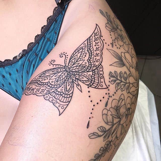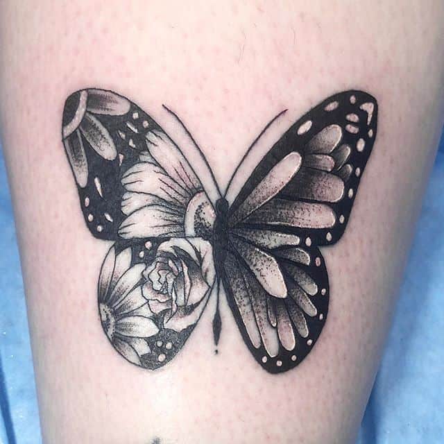 Метелика комбінують з іншими мотивами для посилення сенсу. З квітами: це уособлює красу природи та зростання, як метелик на лотосі, що нагадує про чистоту. Квітка додає романтики, роблячи татуювання більш жіночним і натхненним.