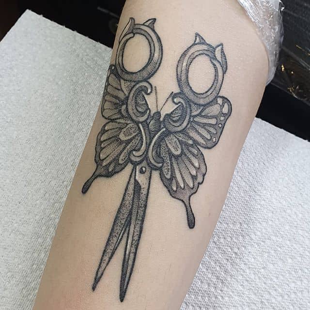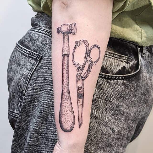 Татуювання з ножицями можуть виконуватися в різних стилях: графіка, реалізм геометрія, однією лінією, акварель, нью скул, олд скул… Варіантів маса. Однаково добре вони підійдуть як дівчатам, так і хлопцям. Розмістити ножиці буде найкраще саме на руках. Наприклад, можна вибрати зону передпліччя, зап’ястя. Але звичайно, відмінно виглядають і ножиці на долоні, якщо одна половинка нанесена на великий палець. А інша – на вказівний. В процесі руху кисті буде створюватися враження, що татуювання реально рухається, майстер знаходиться в процесі роботи.