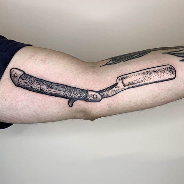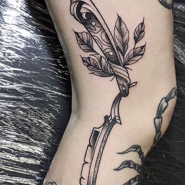 Бритва в світі тату означає позбавлення від чогось, усунення неприємного. Зображення бритви відмінно підійде для барбера, адже саме з цим інструментом він працює найчастіше.