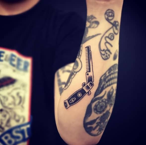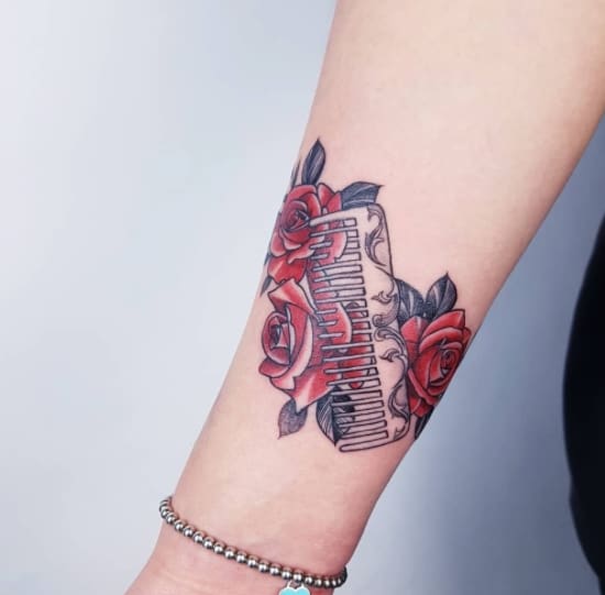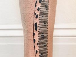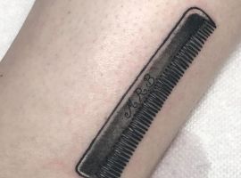 Гребінець як тату вибирають теж як чоловіки, так і жінки. Відмінно це зображення виглядає в мініатюрному або середньому розмірі. Монохромність надає стильність, а яскравий колір – неординарність. Стиль може бути будь-який, починаючи від графіки і закінчуючи нью скулом. Часто доповнюють символ ножицями, локонами, квітами.