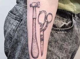 Один з найпопулярніших варіантів барбер татуювання або перукаря – це ножиці. Вони однаково добре підійдуть як чоловікам, так і жінкам. Якщо говорити про загальне трактування цього символу, то воно буде досить багатогранним. “Сім разів відміряй – один раз відріж” – йдеться у відомій приказці. Сенс ножиць як символу полягає в обачності, в тому, що людина, яка вибирає таку ідею, продумує ретельно всі свої кроки наперед. Але в той же час ножиці є і символом творчості, адже неможливо створити дієво щось нове, якщо не «відрізати» старе.