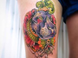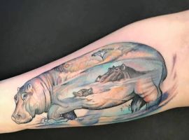 Татуювання з різними тваринами – найпопулярніша ідея. Найчастіше вибирають тигра і лева або ведмедя і вовка. Однак, багато хто не хоче повторюватися, а хочуть знайти більш оригінальну ідею. Дуже цікаве і нестандартне значення татуювання бегемот.